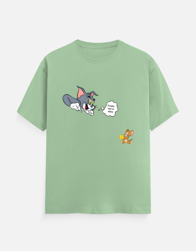 Design: Iconic Tom eyeing Jerry with cheese – a playful throwback to classic cartoon mischief.